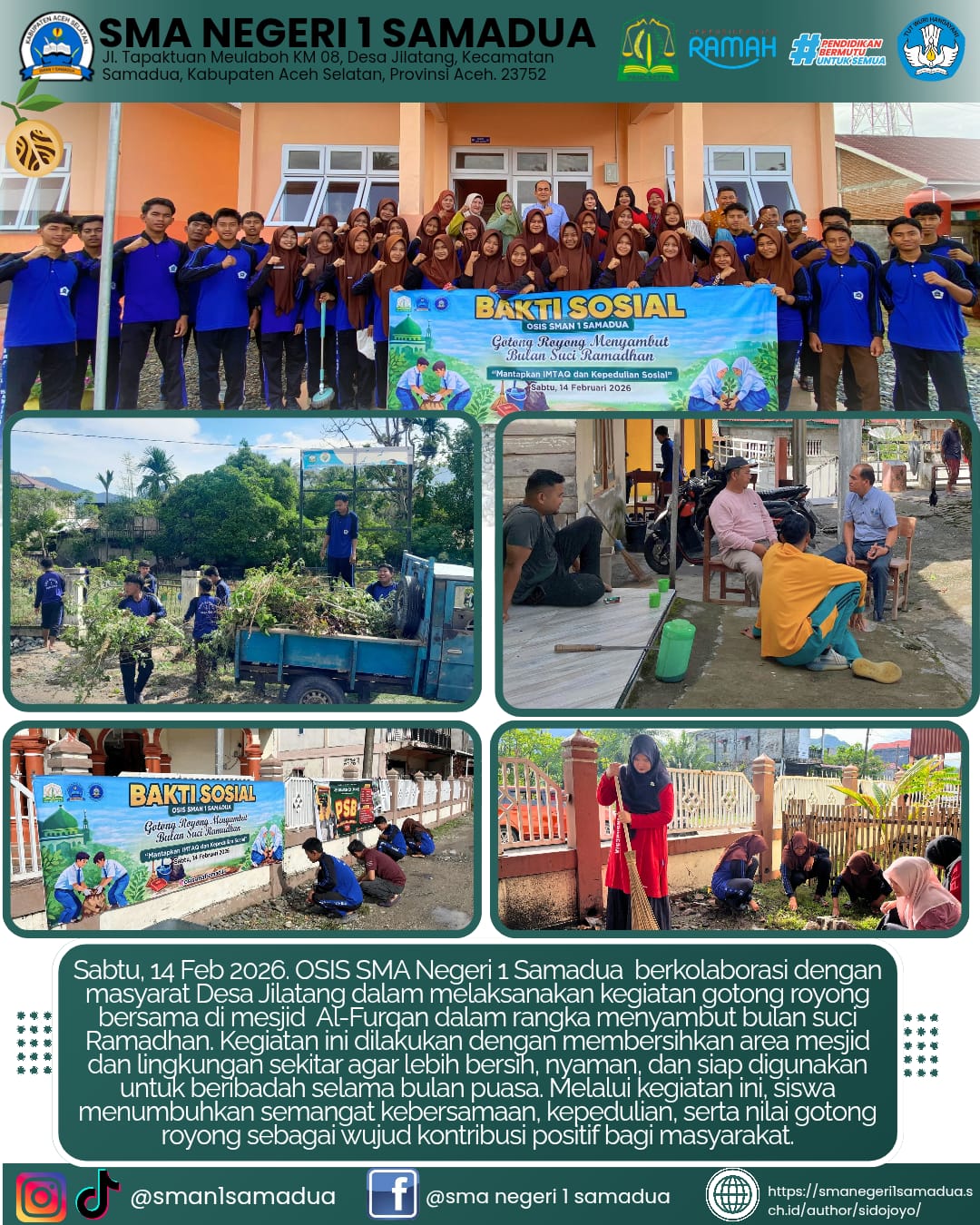 Samadua – Menjelang datangnya bulan suci Ramadan, Organisasi Siswa Intra Sekolah (OSIS) SMA Negeri 1 Samadua menggelar keg...